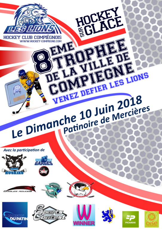 Amis du Hockey, Les Lions de Compiègne ont le plaisir de vous inviter au 9 ème trophée de la ville de Compiègne ;