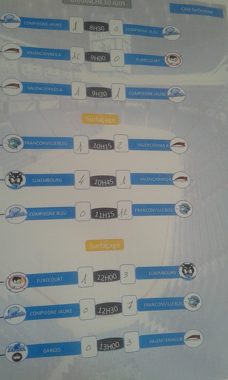 - L’après-midi : les équipes classées de 1- 4 se rencontrent en play-offs gagnant/perdant Les équipes classées de 5 -8 à l’issue de la première phase s’affrontent en matchs de classement.