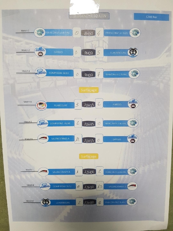 - Le matin : 2 poules de 4 équipes, formule championnat en match de 1 X 15’