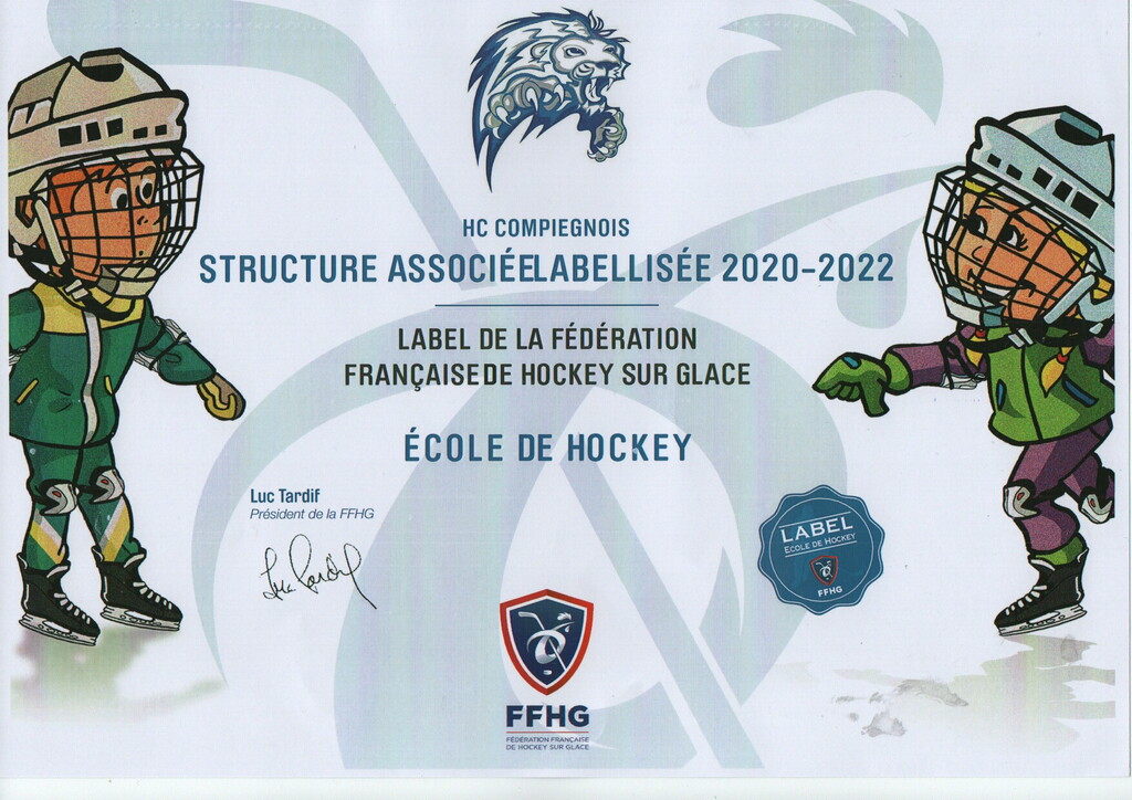 Pour la troisième année consécutive, le Hockey Club Compiégnois reçoit le label "ECOLE DE HOCKEY"