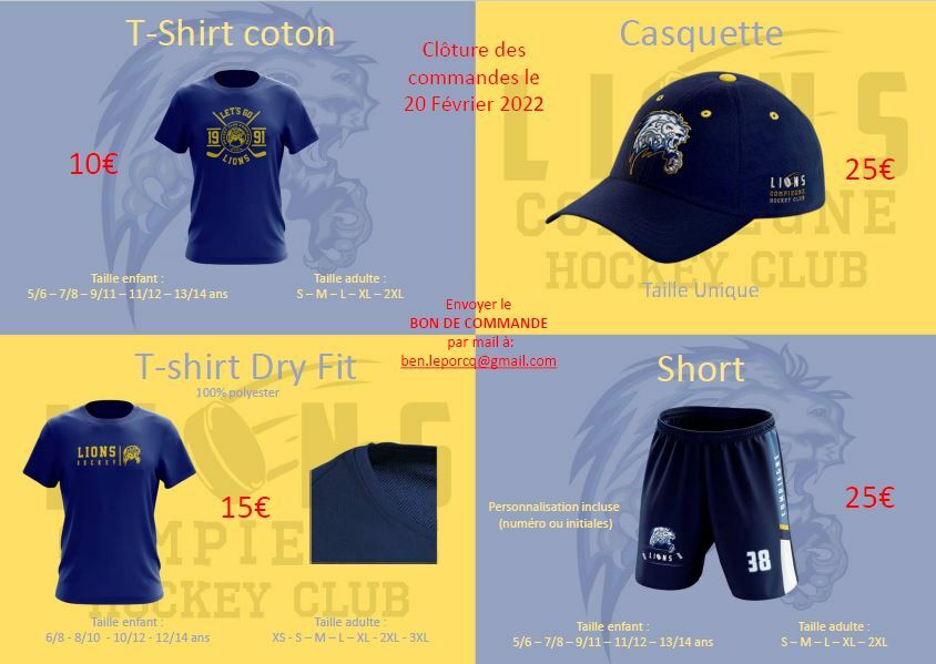 PS : A titre d'information, des sweats du HCC sont disponibles au dépôt allant du XS au XL, excepté en M.